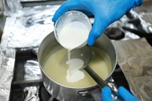 4. 柔らかくなったらミキサーでペースト状にし、生クリームを加えます。塩で味を調えれば完成です。