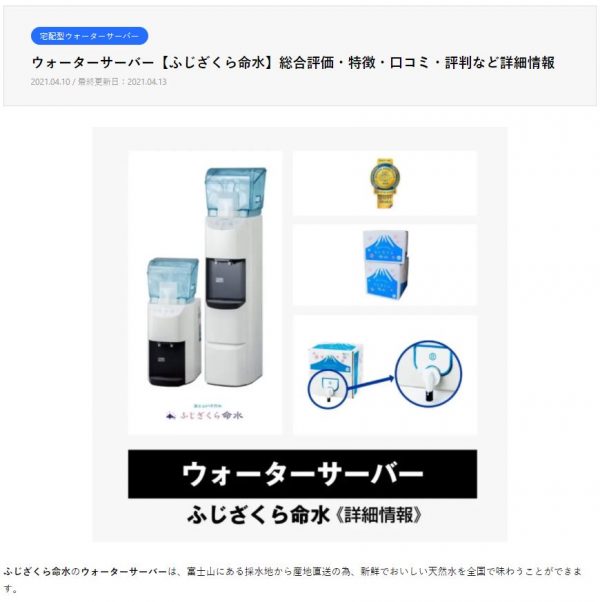 40社以上のメーカー、60種類以上のウォーターサーバーやお水を徹底的に調査し、お住まいのエリアや利用目的別におすすめのウォーターサーバーを紹介する比較サイト「水のある暮らし」にふじざくら命水の記事が掲載されました。
