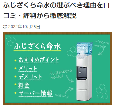 人気のウォーターサーバー・宅配水を口コミや特徴とあわせて紹介する比較サイト「ウォーターサーバーjp」でふじざくら命水が紹介されました。