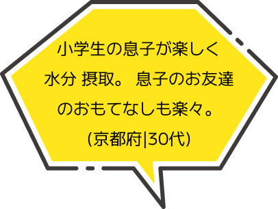 「おいしいお水がすぐに飲めていいよね」と言いながら、楽しそうに自分でお水をコップに注ぐことが増えて、ウォーターサーバーが息子の自立に役立ってくれているのかなと嬉しく思います。
